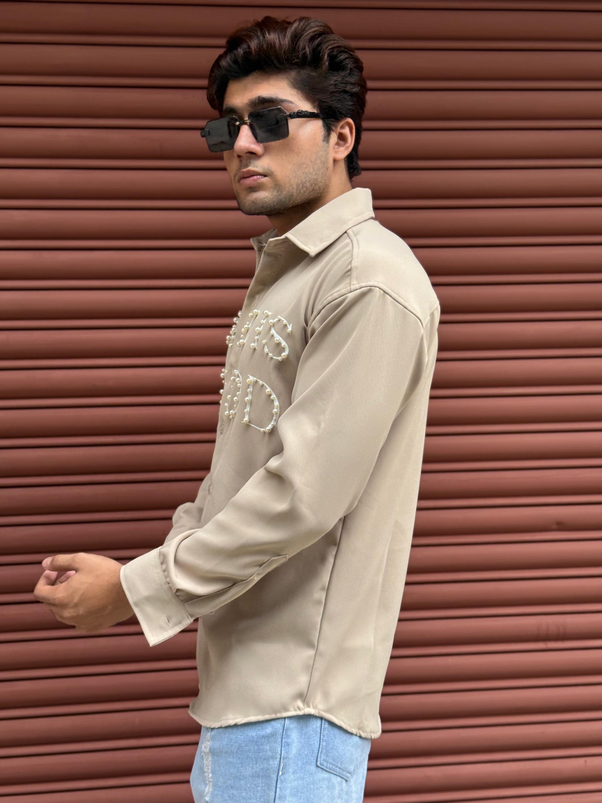This LOVE IS GOOD studded creme shirt offers a regular fit crafted from a comfortable blend of 50% cotton and 50% polyester, ensuring durability and breathability. Perfect for casual or party occasions, it combines style and ease of wear.